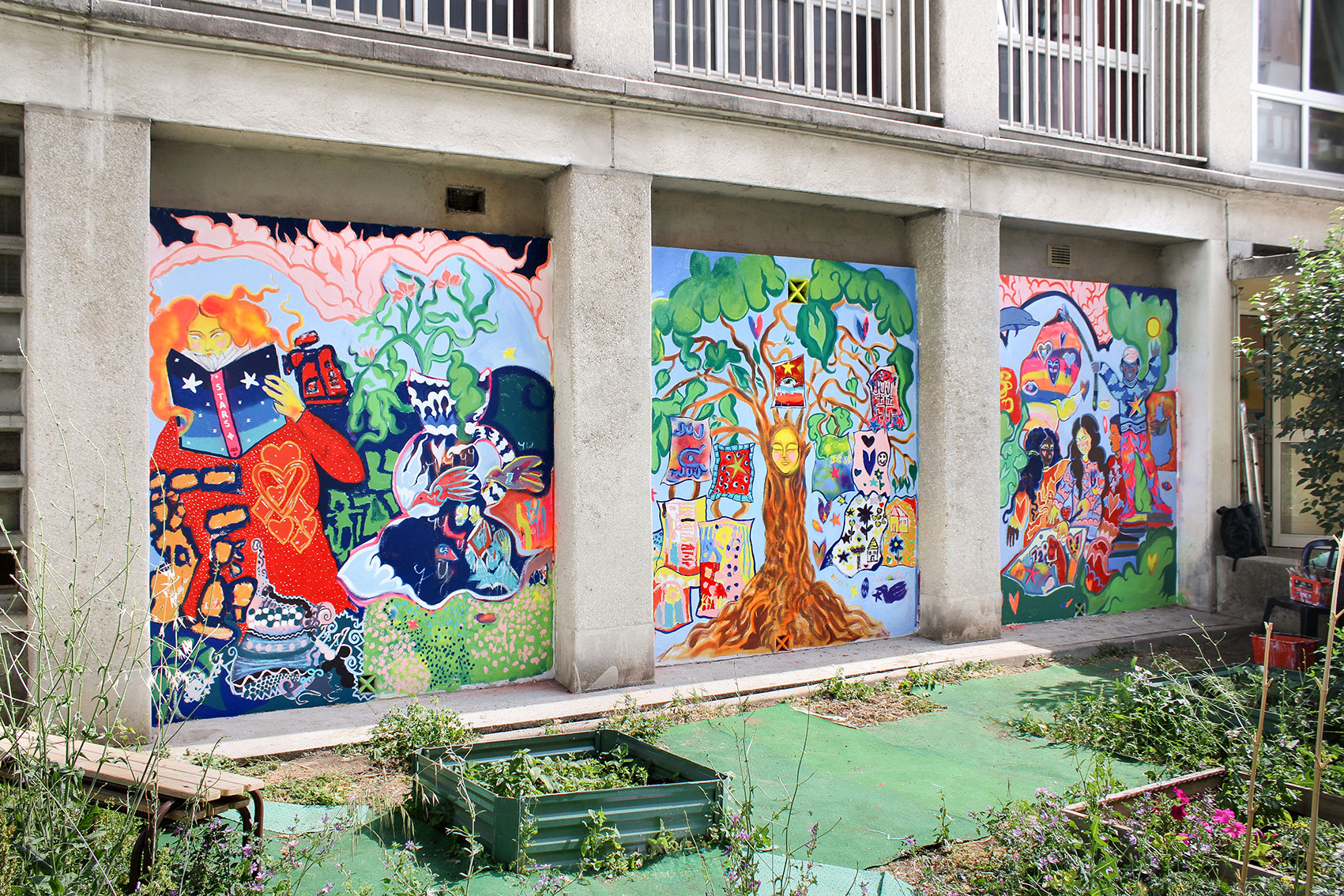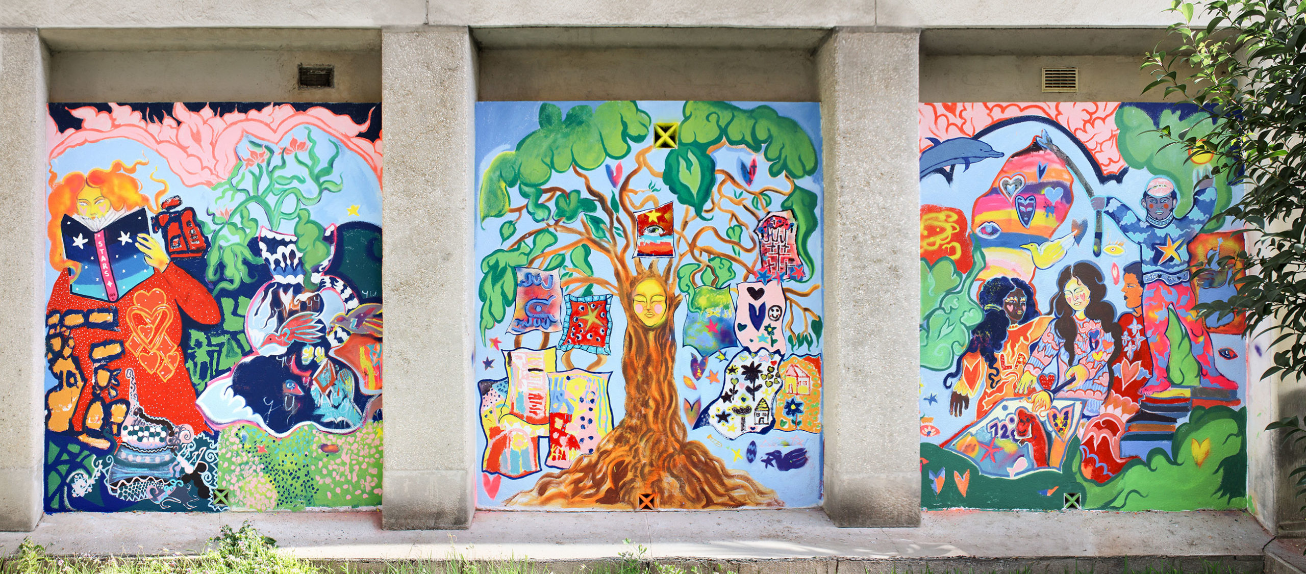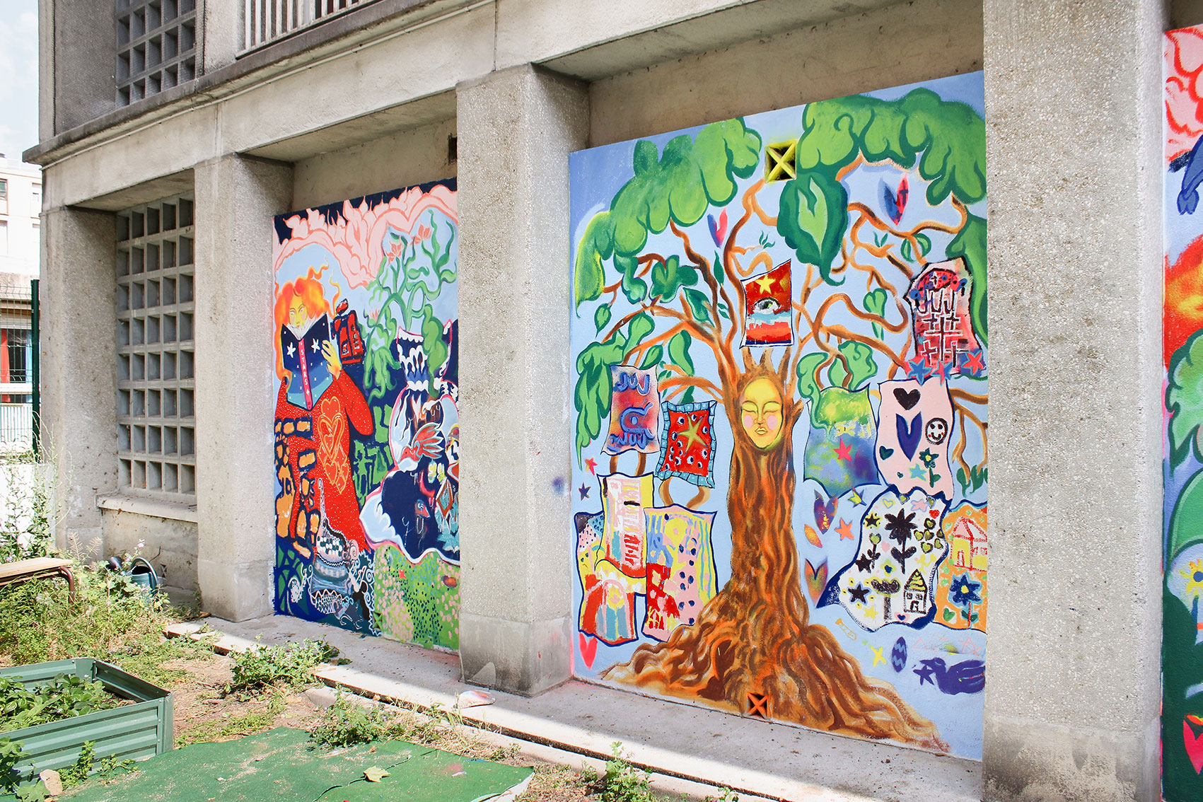 Peinture, pastels, fusain, encre de Chine… autant de médiums qu’ils ont pu découvrir pour exprimer leur monde intérieur, au-delà des mots, des langues et des différences. Les élèves et enseignants ont ainsi pu prendre part à la réalisation d’une fresque murale collective qui a transformé l’entrée de l’école en repère visuel du quartier.