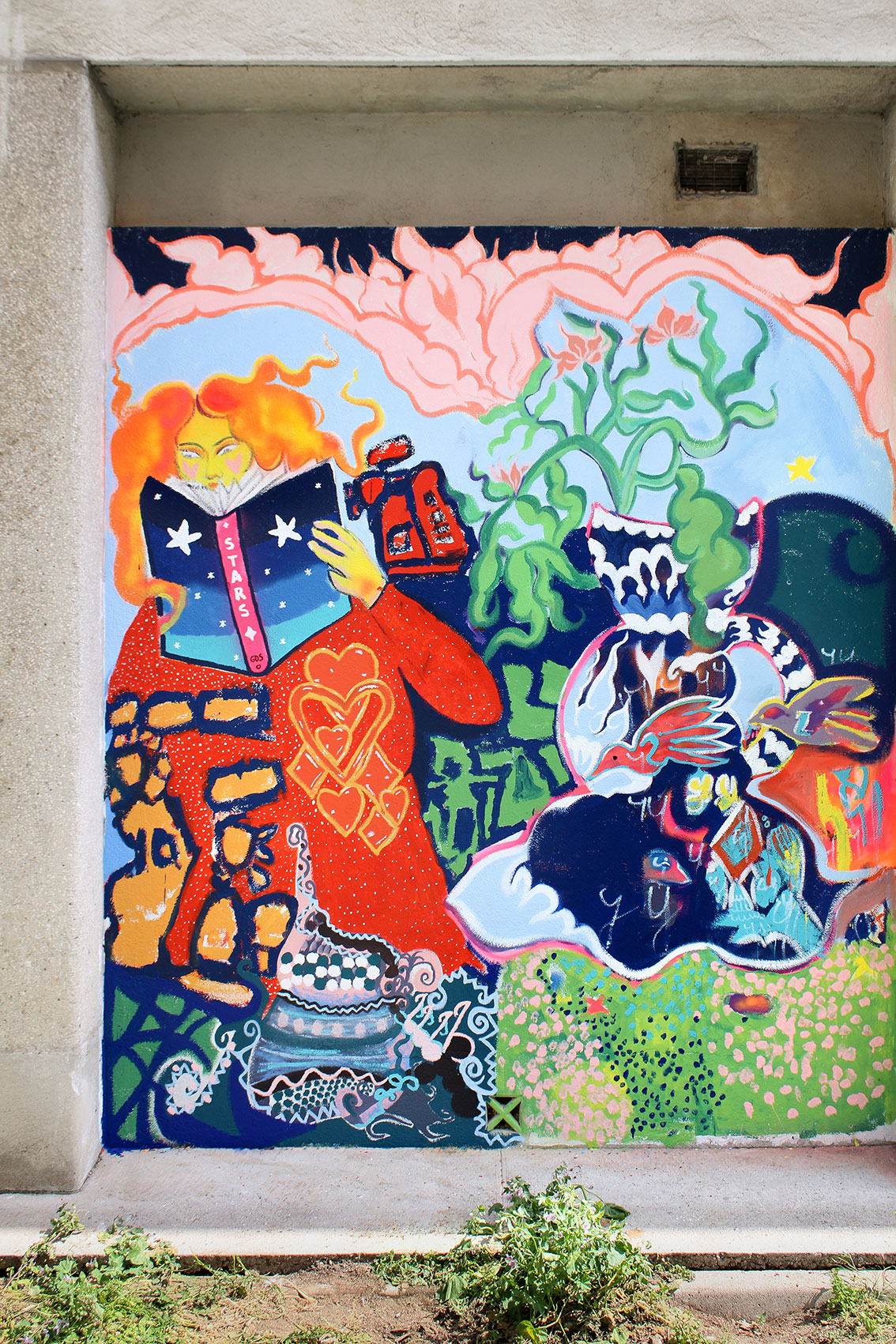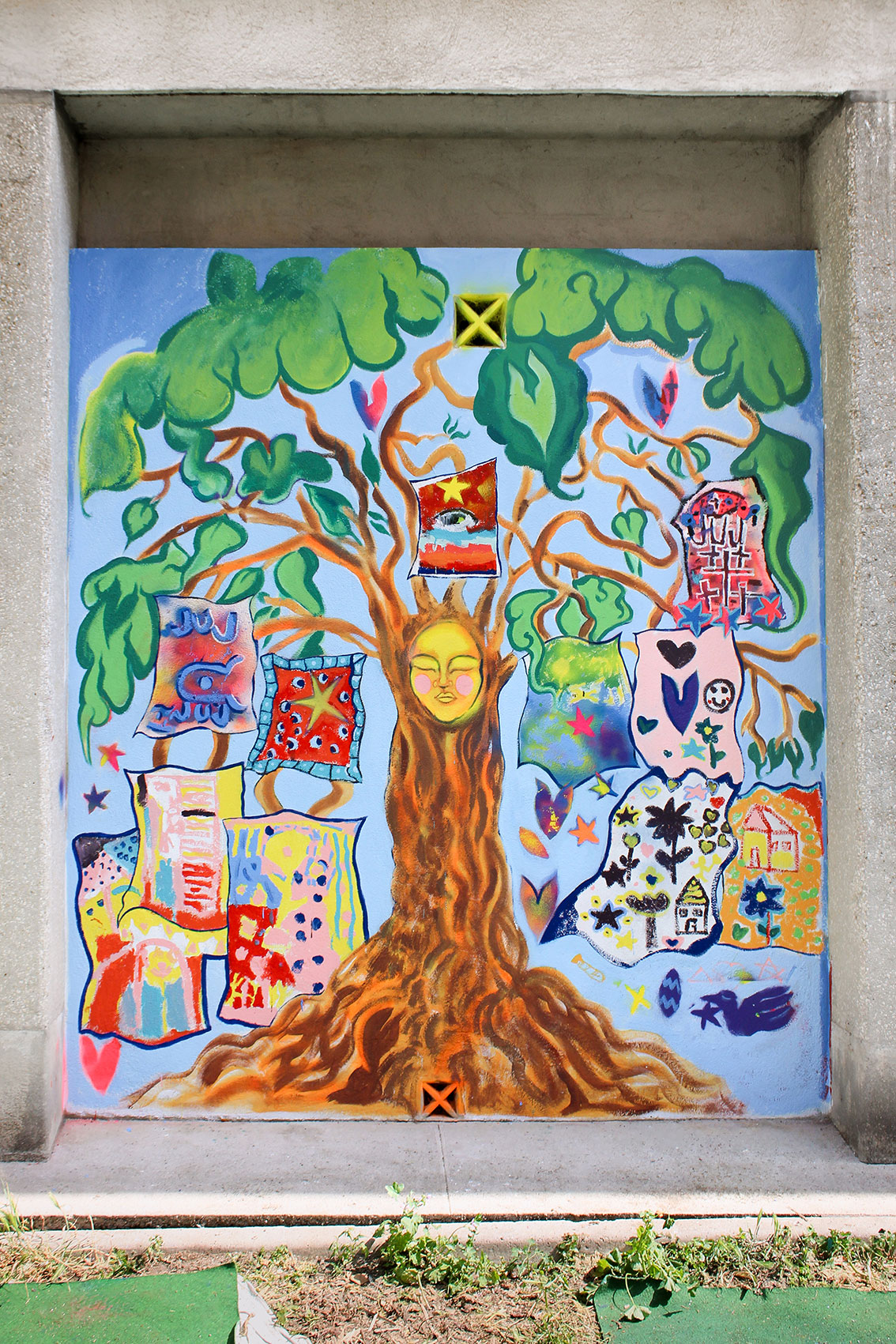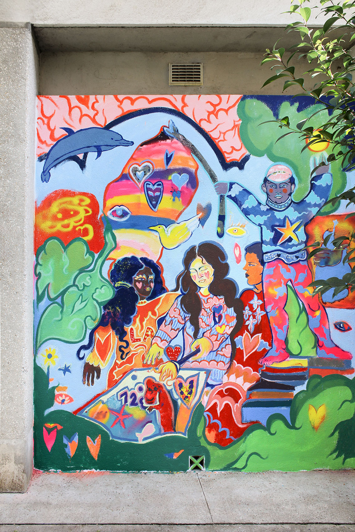 Peinture, pastels, fusain, encre de Chine… autant de médiums qu’ils ont pu découvrir pour exprimer leur monde intérieur, au-delà des mots, des langues et des différences. Les élèves et enseignants ont ainsi pu prendre part à la réalisation d’une fresque murale collective qui a transformé l’entrée de l’école en repère visuel du quartier.