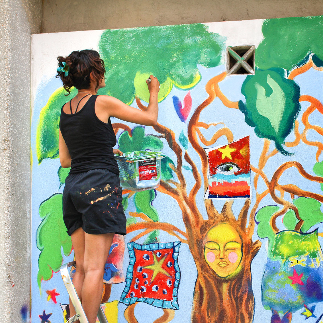 Artiste pluridisciplinaire, Feryel Atek développe une pratique qui mêle peinture, illustration et médiation artistique. Elle s’intéresse particulièrement aux projets collaboratifs et à la transmission, en cherchant à créer des espaces de rencontre entre l’art et le public.