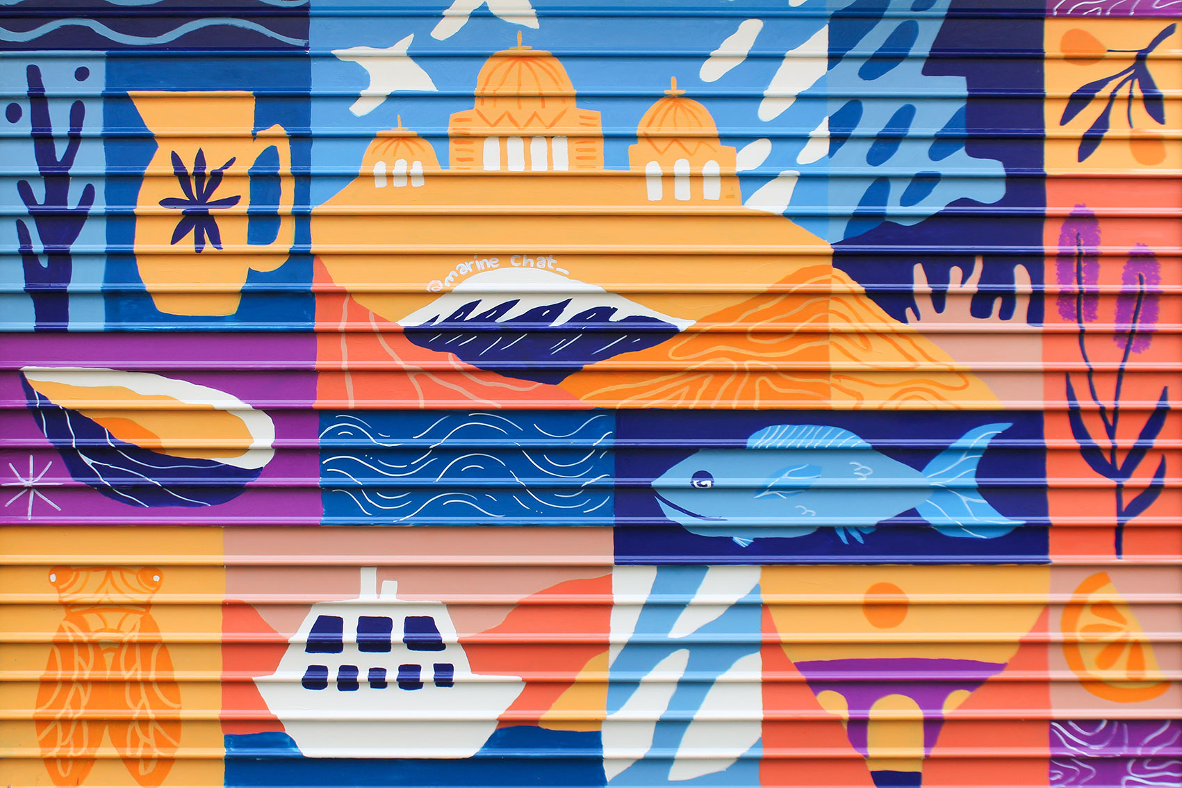 À la croisée du design graphique et de l’illustration, Marine Chatelet dévoile son univers en rendant hommage au quartier de la Major : sa cathédrale, son environnement et ses traditions. À travers une palette automnale et lumineuse, elle fait vibrer et révèle ce coin emblématique et historique de Marseille.
